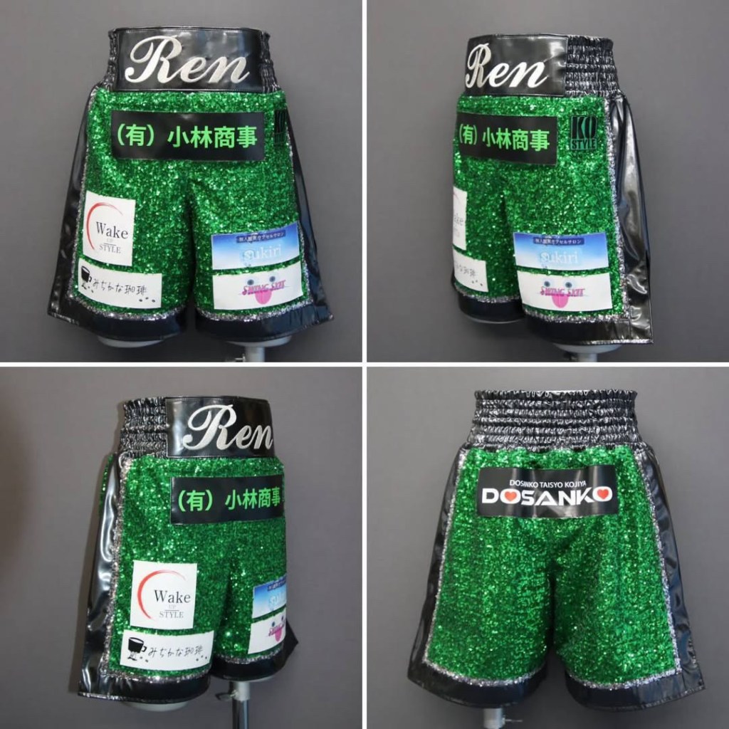 この度、プロボクサー小林蓮選手のトランクスに当店のロゴが!!!