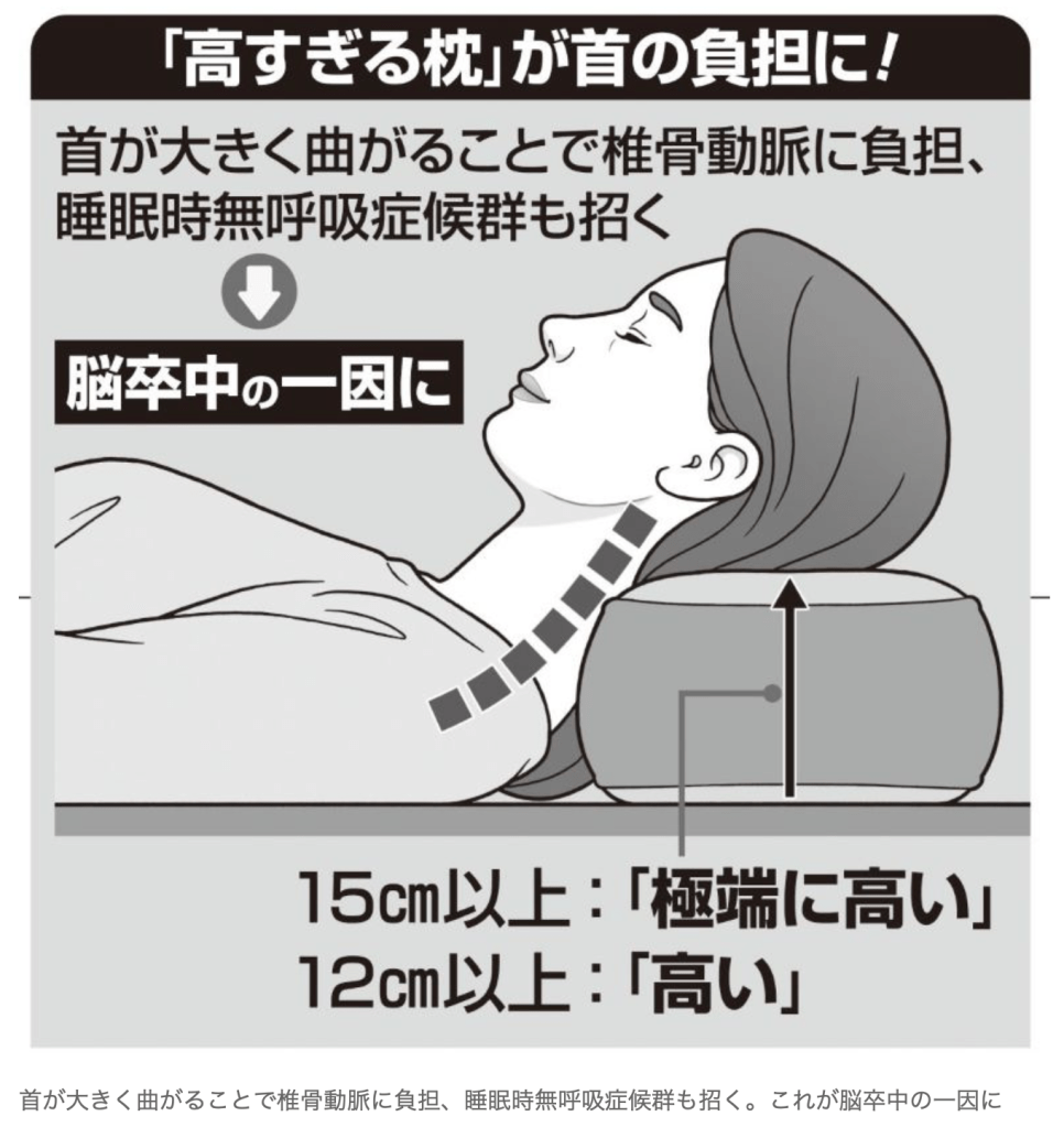 枕が高いほど発症割合が高く、枕が硬いほど発症との関連が強くなる傾向もあったと発表しています。