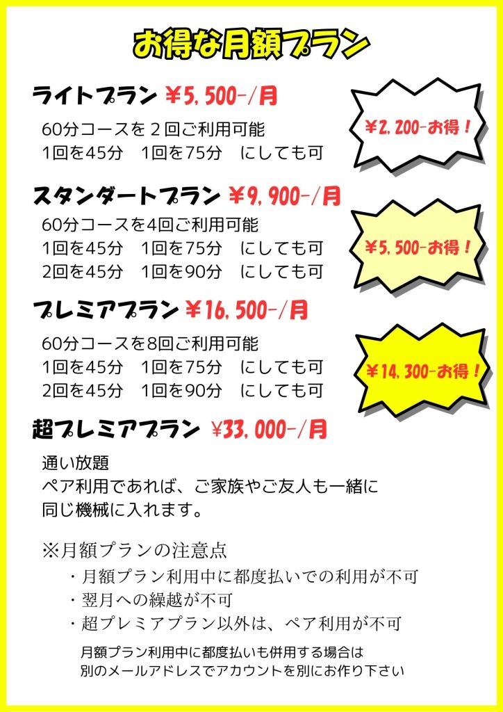ダイエット目的の方は、コンスタントにご利用頂く方が効果が出やすいので月額プランでのご利用をオススメ致します!