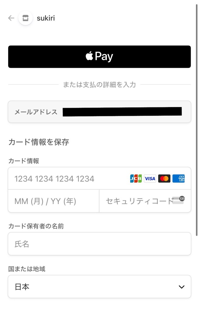 ※Apple Payは名前などの情報を事前に登録していないとエラー表示になります。