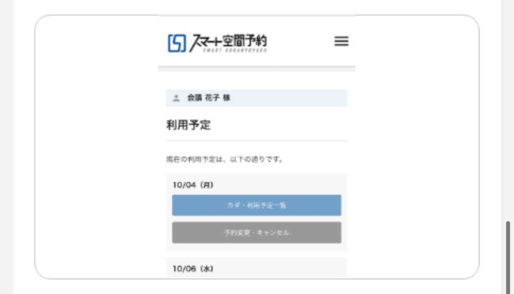 2.マイページにログインすると、日付別の予約一覧が表示されます。予約日の「カギ・利用予定一覧」ボタンを押してください。