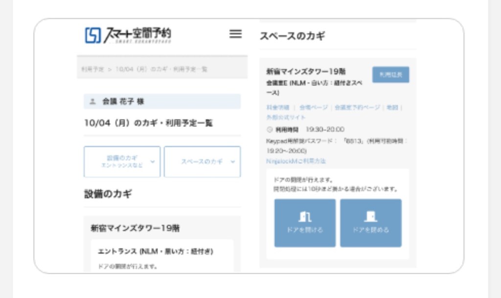 3.「カギ・利用予定一覧」からエントランスの鍵の「ドアを開ける」ボタンが表示されます。
